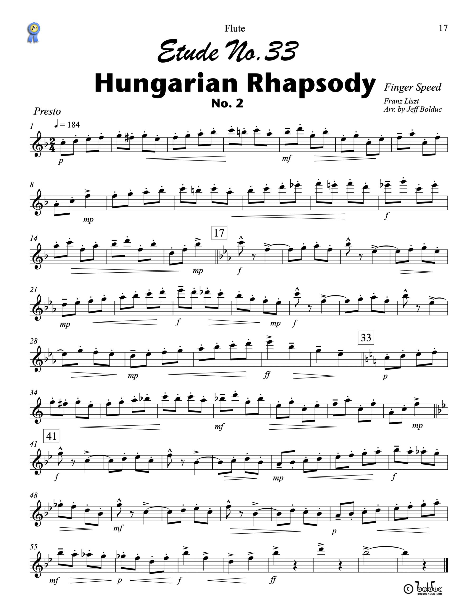 This collection of 35 melodic etudes will provide any developing Flute player varied and interesting study pieces to rehearse and perform.
